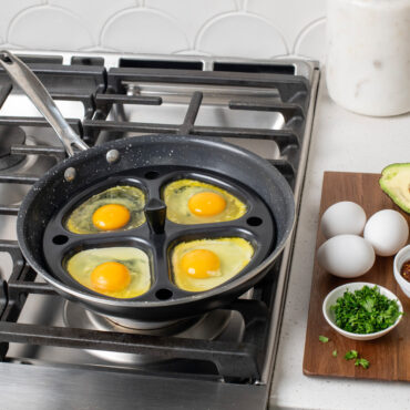Make perfect poached eggs every time with the Nordic Ware Universal Egg Poacher Insert, a must-have cookware accessory for breakfast lovers and home chefs. Designed to fit any 10- to 12-inch skillet, this lightweight insert features four 3x4 inch cavities to poach up to four eggs simultaneously with ease, simply add water and cook. Crafted from durable aluminized steel with a nonstick coating, it ensures eggs release effortlessly while providing quick, even heat distribution.