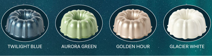With Nordic Ware’s deep Scandinavian heritage and American roots, this line is the perfect nod to our culture. Northern Lights Bakeware is inspired by the beautiful aurora borealis in the night skies and infuses a pop of color that bakers are seeking with the best baking properties of aluminum. This American-Made collection features our everyday formed bakeware designs including Bundt pans, donut pans, tarts and other specialty pans in 4 new color varieties.