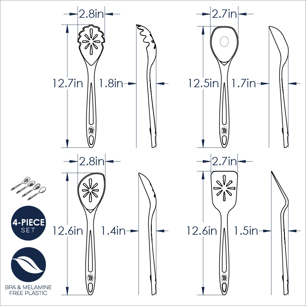Each utensil is made from high-heat, BPA-free, and melamine-free plastic, ensuring safe, long-lasting performance while protecting your cookware from scratches. The sleek storm gray color adds a modern, sophisticated touch, blending seamlessly with any kitchen décor. Lightweight and ergonomic, the utensils provide a comfortable grip for precise control and effortless cooking.