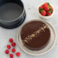 Product image 4 of 6: chocolate cake with nuts plated next to 7in springform pan