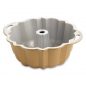 The pan’s alternate vertical flutings make slicing and serving clean and easy, while the built-in braided handles ensure effortless lifting and unmolding. Crafted from durable cast aluminum, with an elegant gold finish, it provides even heat distribution for consistently golden cakes every time.