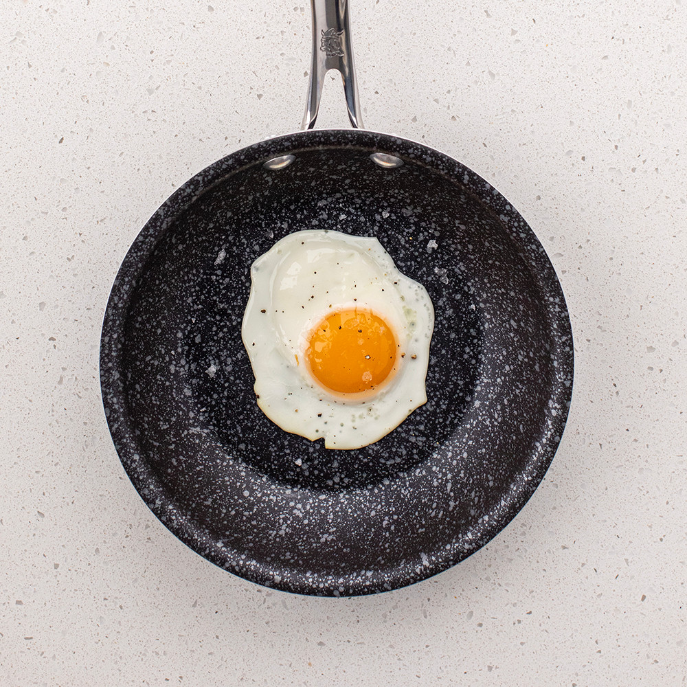 Product image 4 of 10: Nordic Ware Basalt ceramic nonstick 8-inch skillet with cooked sunny-side up egg, dark gray finish