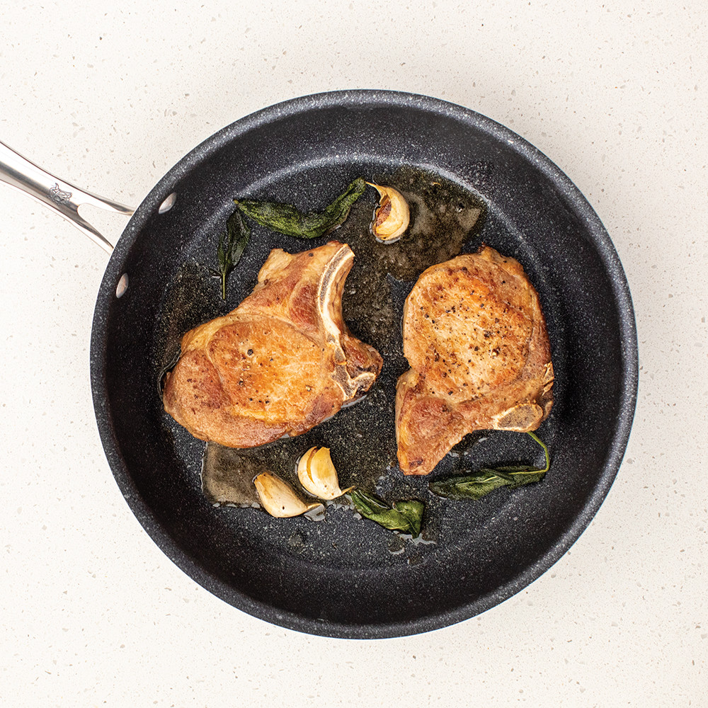 Product image 9 of 10: Nordic Ware Basalt ceramic nonstick 12-inch skillet with two golden-brown seared pork chops