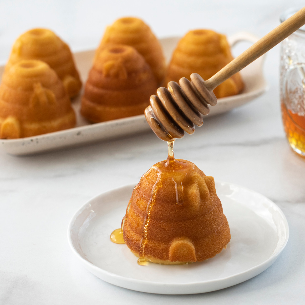 2. Before each use, brush with butter or shortening and dust with flour or cocoa to coat. Baking spray