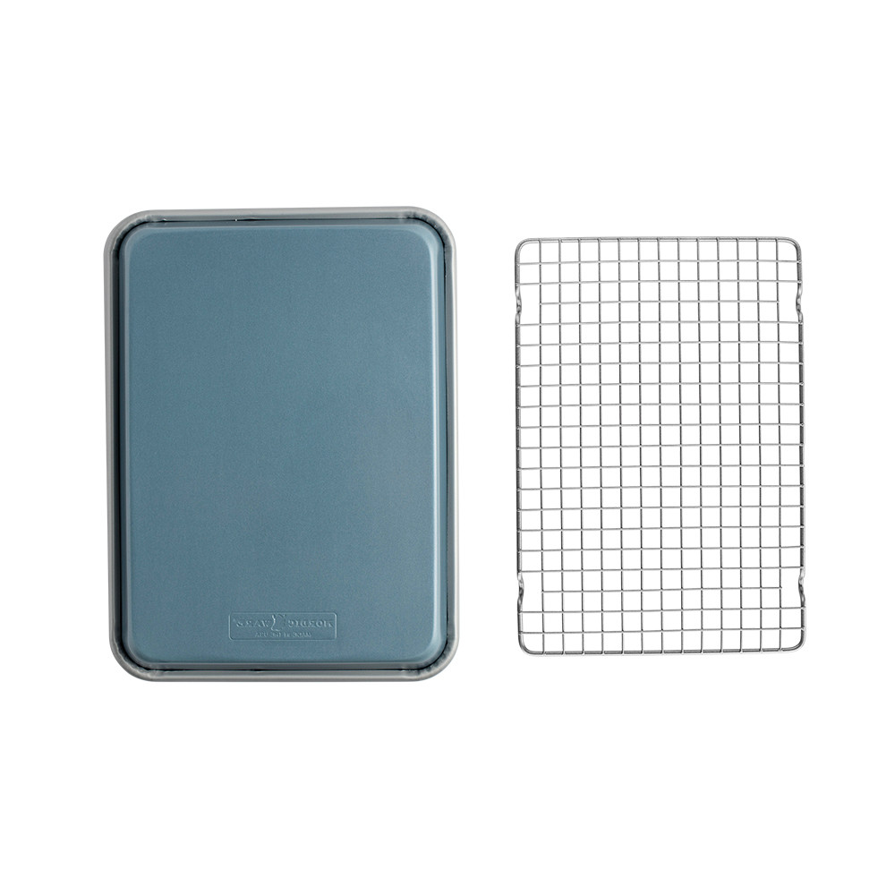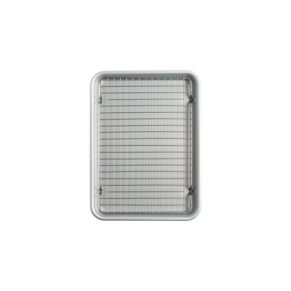 Set includes Brilliant Quarter Sheet with imported oven-safe nonstick grid