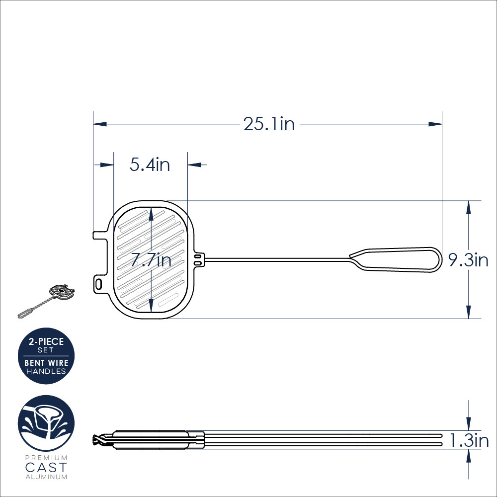 - Prior to adding food, heat both halves of press over grill or campfire for 1-2 minutes. While not required, brushing inside of press with cooking oil will improve browning and food release.
