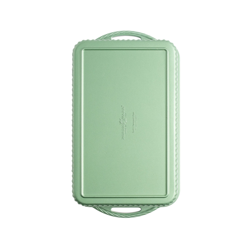 Product image 1 of 7: cardamom aluminum baking pan with green exterior coating and white interior nonstick finish