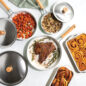 Product image 2 of 8: overhead image of cardamom 8 PC Bakeware and Cookware Set staged with food