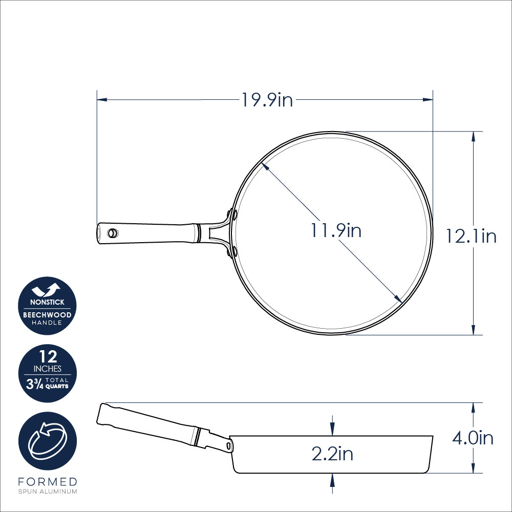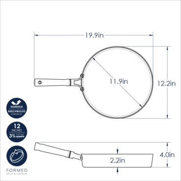 The modern, sleek shape ensures even heat distribution across the wide base, giving your food perfect browning and cooking results every time. Compatible with gas, electric, and ceramic stovetops, this skillet delivers consistent, high-quality results without sticking. Part of the Nordic Ware Cardamom Cookware collection, it pairs beautifully with matching pieces for a cohesive, elegant kitchen set. Please note, it is not for oven use.