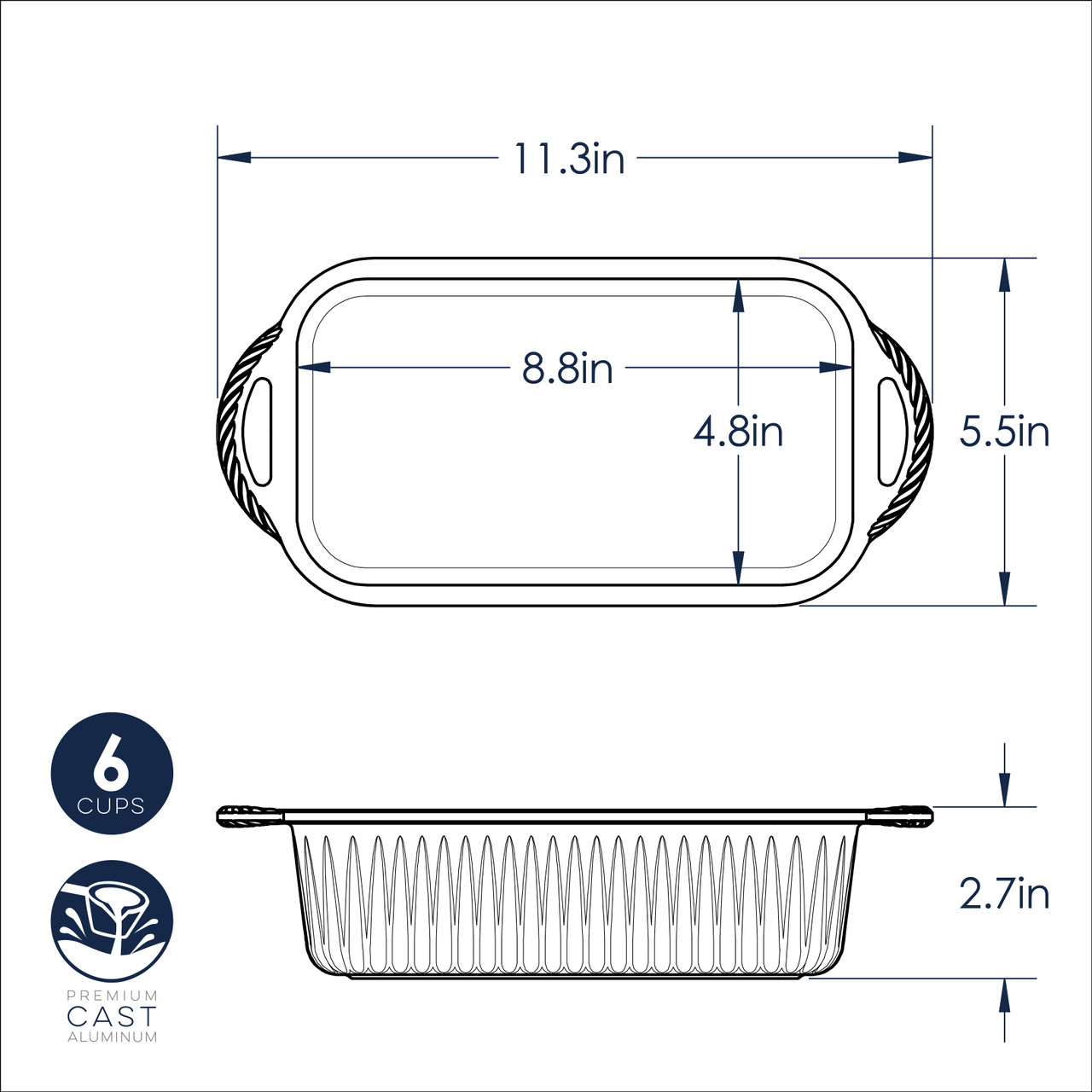 Product image 7 of 8: caradamom loaf pan dimensional drawing