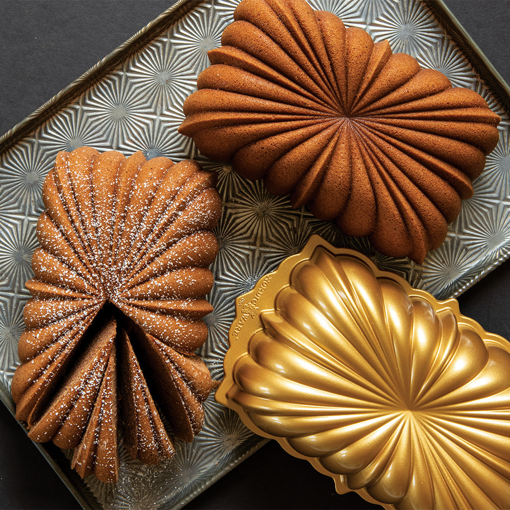 Bake, store, and serve with confidence using the Nordic Ware Fluted Loaf Pan and Loaf Keeper Set. The fluted loaf pan is made of durable cast aluminum, providing superior heat conductivity for evenly baked breads, quick loaves, and sweet treats with striking detail. With a 6-cup capacity elegant gold exterior finish and premium nonstick interior, it ensures effortless loaf release every time. For optimal results, brush with butter or shortening and dust with flour or cocoa powder. Oven safe up to 400°F, this pan is ideal for a wide range of baking projects, from everyday loaves to special occasions.