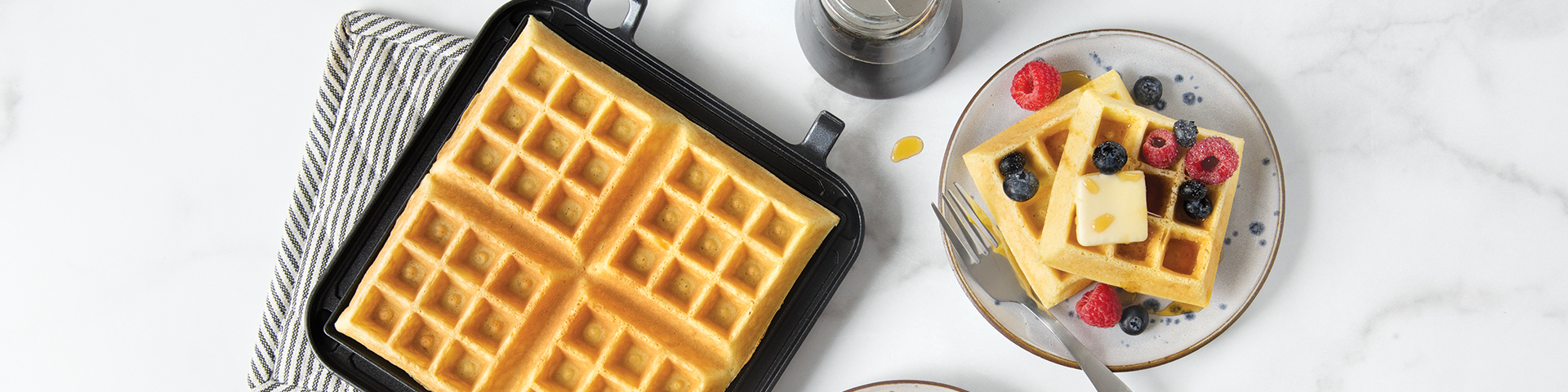 Nordic Ware’s breakfast pans stand out because of their durability, even heat distribution, and thoughtful design. Made from high-quality cast aluminum, they heat quickly and cook evenly, preventing hotspots that can lead to uneven browning. Many of our pancake, waffle, and egg pans also feature unique shapes and patterns, adding a fun touch to your breakfast.