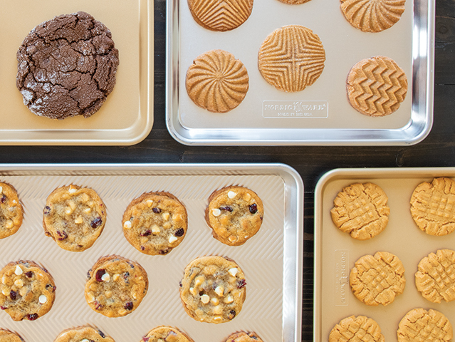 Nonstick baking pans are all about ease—less sticking, less scrubbing, and less need for parchment paper. Uncoated aluminum pans, like those in our Naturals® line, offer great performance too, especially for those who prefer more browning or crisper edges. Both styles provide excellent heat distribution, but the coated versions simplify cleanup.