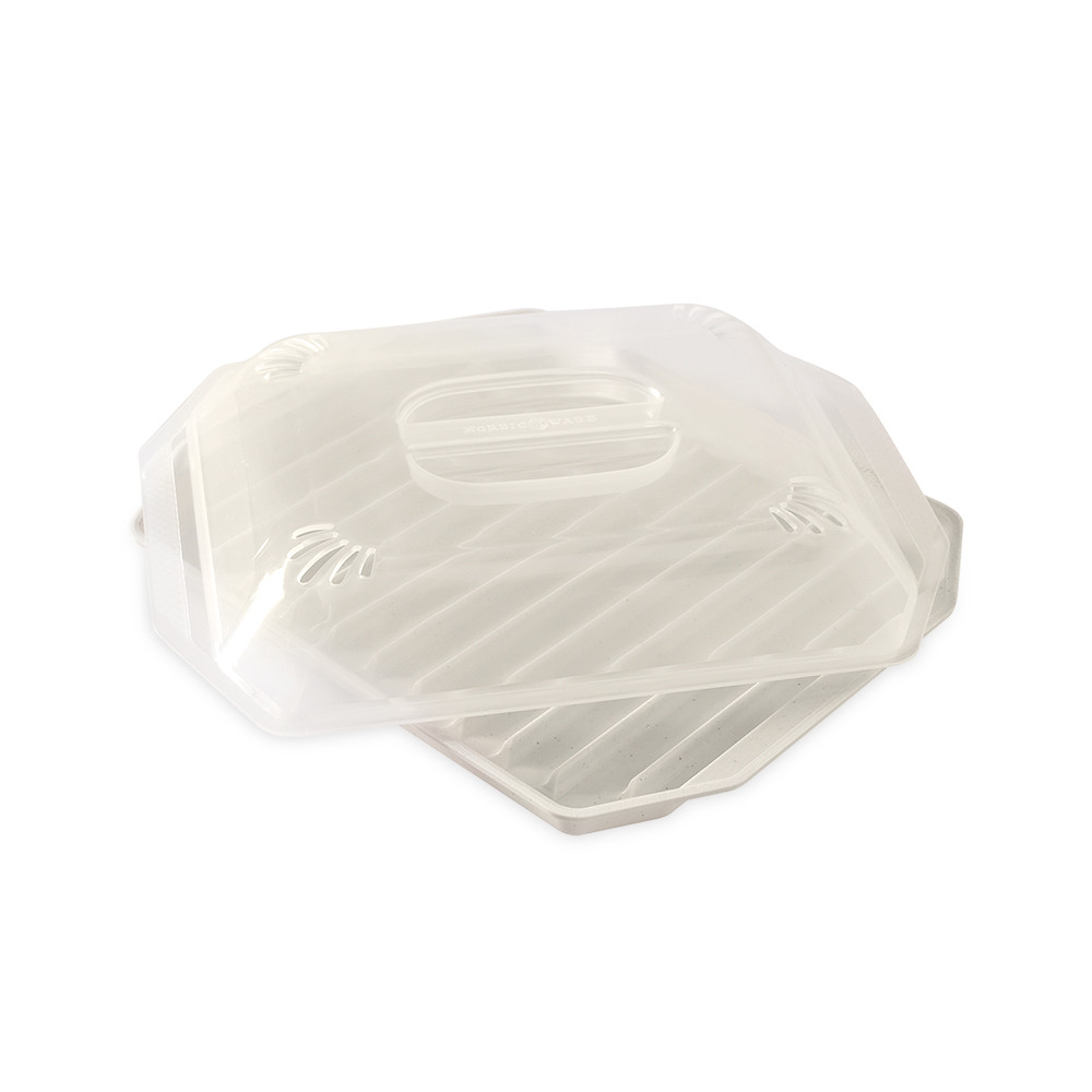 Cook perfectly crispy bacon and small meats quickly and effortlessly with the Nordic Ware Compact Bacon Tray with Lid, designed for mess-free microwave cooking and easy cleanup. Its smart, angled ridges elevate food to let grease drain away, ensuring evenly cooked, flavorful, and crispy bacon every time. The included vented lid helps contain splatters and retain heat, keeping your microwave clean while maintaining a safe, efficient cooking experience.