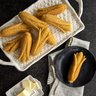 I use my family’s cornbread recipe and just fill each ear of corn in the pan only two thirds of the way up. If you tap the pan and let it sit for a few minutes before baking the details come out better. Remember to spray the pan with Bakers Joy or equivalent demoulding spray.
