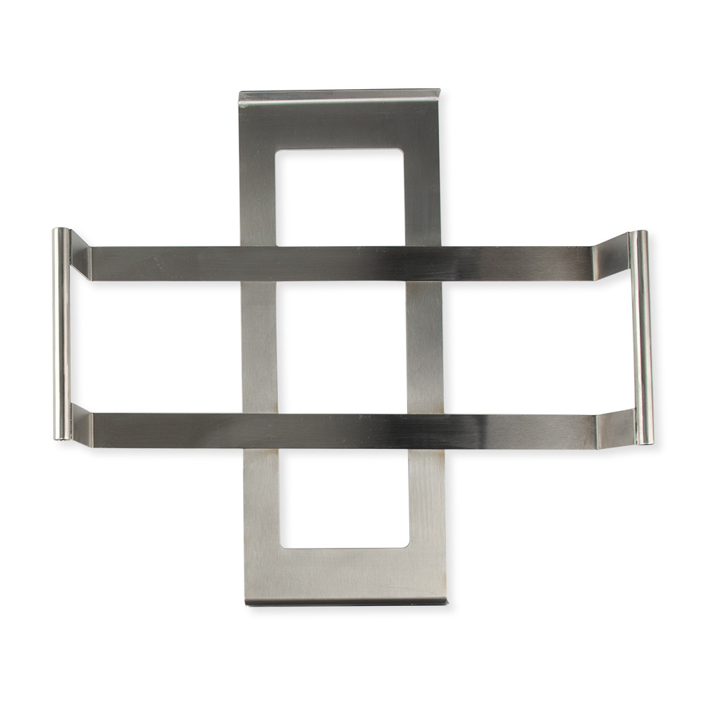 Product image 6 of 7: Black metal wire rack for square pizza stone, elevated design with four legs and grid pattern surface