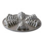 This festive cakelet pan features six detailed evergreen tree cavities with a 2.5-cup total capacity, perfect for baking petite fir tree cakes that transform any holiday dessert tray into a showpiece. The intricate ridges and textured branches on each tree capture glazes, drizzles, and dustings of powdered sugar beautifully, creating a snowy, enchanting effect. The sparkling silver finish adds an elegant, seasonal glow, making these charming tannenbaums ideal for winter gatherings, gingerbread house landscapes, or a decorated holiday table.