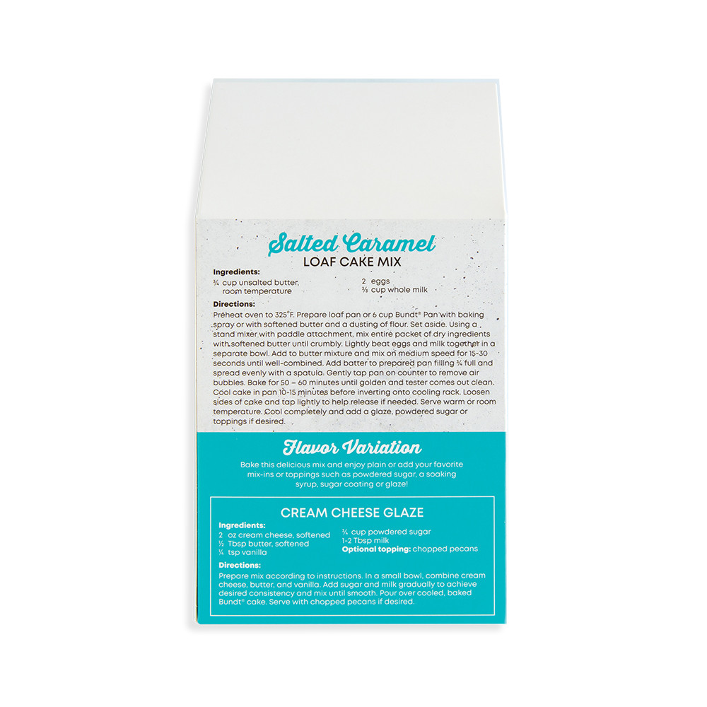 Product image 7 of 9: Nordic Ware Salted Caramel Quick Bread Mix package back panel showing ingredient list and nutritional information