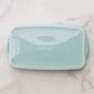 Product image 1 of 5: Nordic Ware rectangular loaf cake keeper in sea glass blue color with clear lid, plastic storage container
