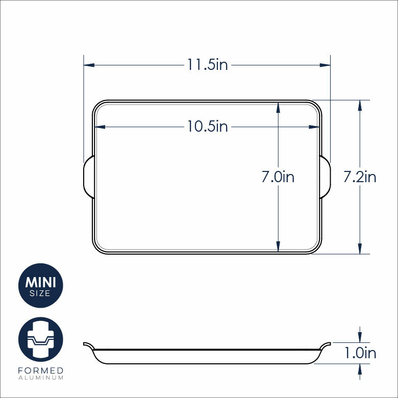 Product image 4 of 4: Nordic Ware mini griddle pan dimensional diagram showing 11.5x7.2 inch rectangular cookware with 1-inch depth