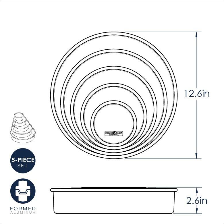 Product image 1 of 5: Nordic Ware Naturals aluminum wedding cake pan set with five round pans in graduated sizes from 4 to 12 inches