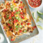 Product image 8 of 13: Two Nordic Ware aluminum half sheet pans with loaded nachos featuring melted cheese, jalapeños, and toppings