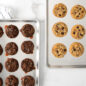 Product image 6 of 13: Golden chocolate chip cookies cooling on Nordic Ware aluminum half sheet pan with natural silver finish
