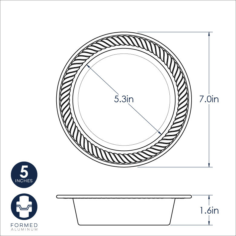 The Naturals® Compact Ovenware 5" Mini Pie Pan is the perfect addition to any kitchen. Made in America by Nordic Ware, this mini pie pan is constructed from natural aluminum for even heating, ensuring your pies come out beautifully round and delicately crispy every time. Whether baking savory pot pies for one or sweet mini-fruit pies for two, this compact pan is versatile enough to handle any recipe. The set includes two 5” Mini Pie Pans.