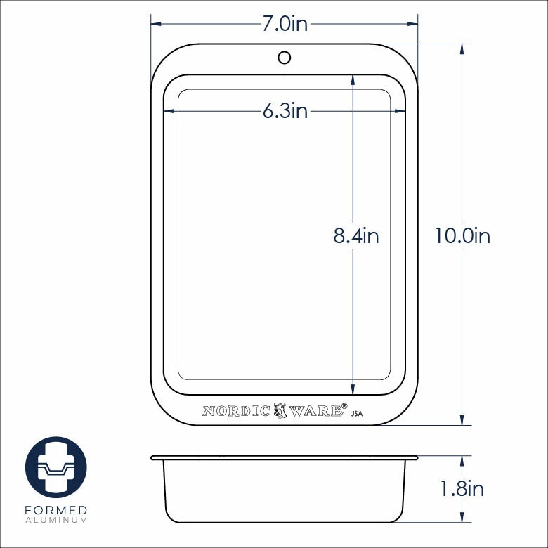 Bake, roast, and crisp with confidence using the Nordic Ware Naturals Compact Ovenware Crisping Sheet. Featuring a sleek silver finish, this premium crisping tray is perfectly sized to fit compact ovens, toaster ovens, and air fryers, ideal for 1 or 2 portions. Crafted from pure natural aluminum, it offers superior heat conductivity and even baking performance while resisting rust for lifetime durability. The perforated surface allows air to circulate freely, promoting optimal browning and crisping—perfect for pizza crusts, appetizers, and reheating frozen foods to golden perfection.