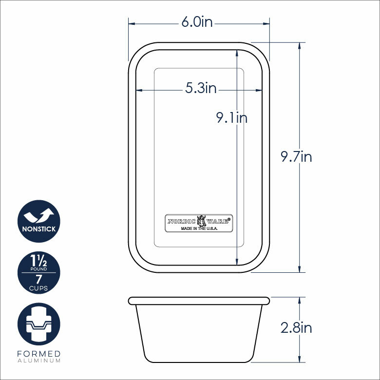 Product image 3 of 3: Nordic Ware Naturals nonstick aluminum loaf pan dimensional diagram showing 9.1x5.3x2.8 inch measurements