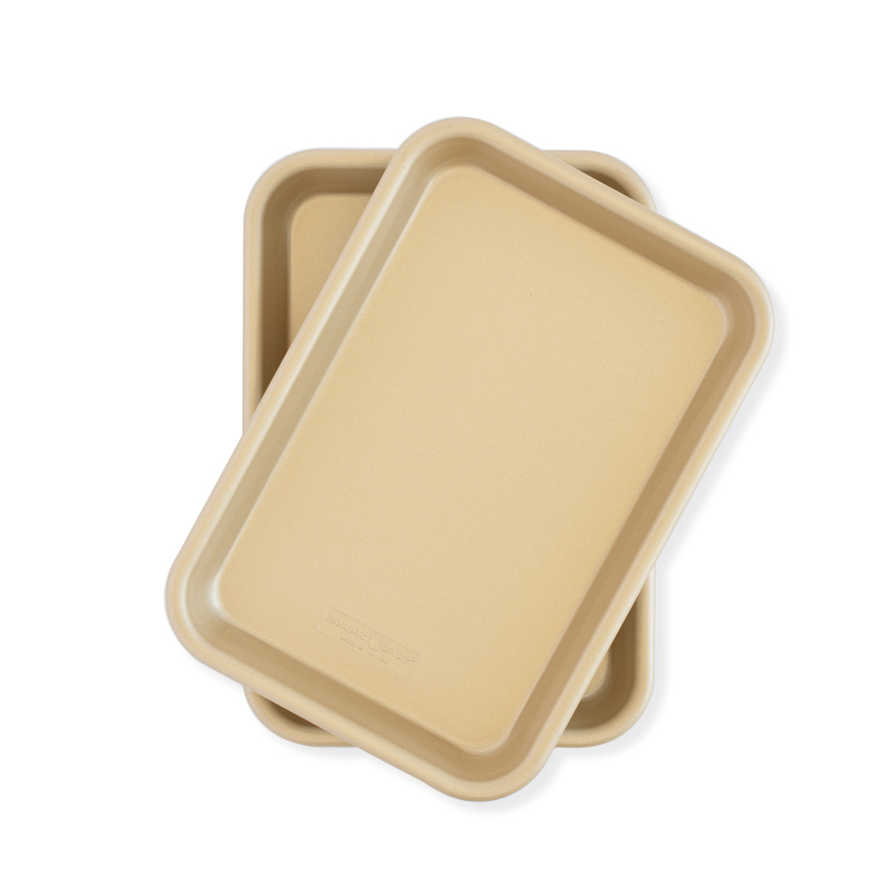Small but mighty—meet the Nordic Ware Naturals Nonstick Eighth Sheet Pan 2-Pack Set. These compact eighth sheet pans may look petite, but they are endlessly versatile for everyday baking, roasting, and meal prep. Perfectly sized to fit countertop ovens, toaster ovens, and most air fryers, they are crafted from natural aluminum for superior heat conductivity and evenly baked results. The premium gold nonstick interior releases food effortlessly and cleans up quickly, while warp-resistant construction keeps each pan sturdy, dependable, and maintaining its shape through repeated use.