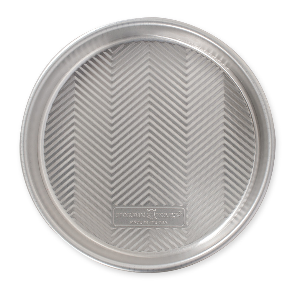 Bake with confidence using the Nordic Ware Prism 9-Inch Round Cake Pan, a must-have from the Embossed Natural Aluminum Bakeware collection. Crafted from pure natural aluminum, this professional-quality round pan ensures superior heat conductivity for evenly baked, golden-brown cakes every time. The exclusive Prism embossed grid pattern enhances airflow, strengthens the surface, and promotes easy food release, making cleanup quick and simple while adding a sleek, textured design.