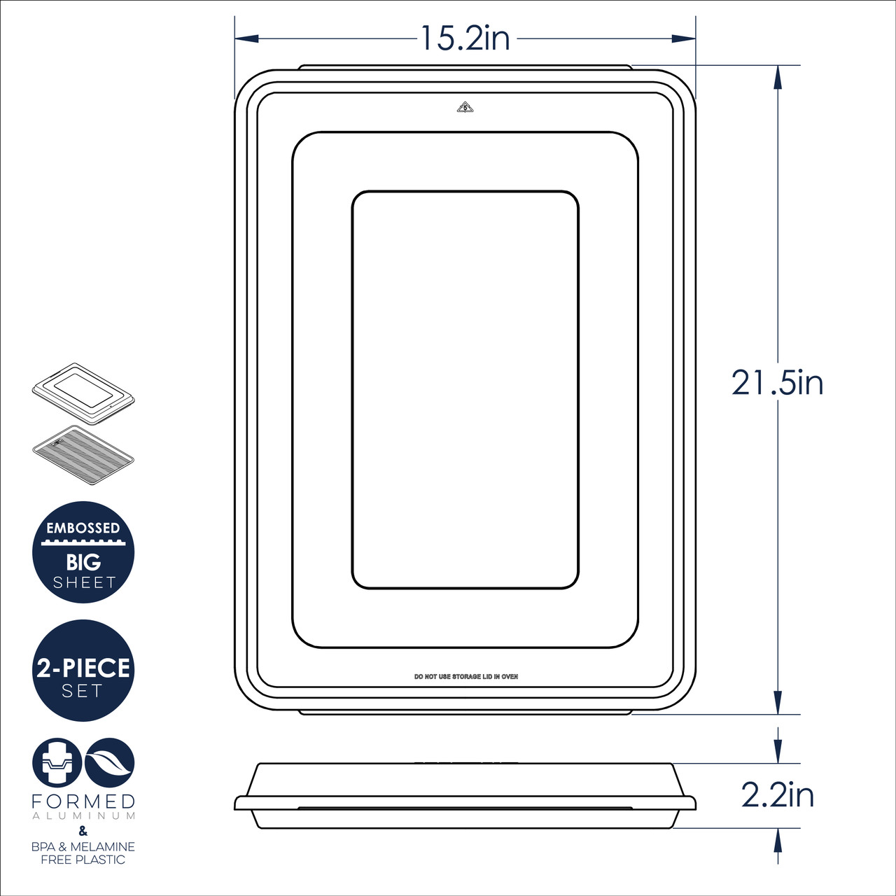 Upgrade your baking and meal prep with the Nordic Ware Prism Half Sheet Pan with Lid, a professional-quality half sheet baking pan designed for home bakers and cooking enthusiasts. Made from pure, uncoated aluminum, this oven-safe baking pan heats quickly and evenly for consistently golden-brown cookies, sheet cakes, roasted vegetables, and sheet-pan meals. The exclusive Prism embossed, textured surface enhances airflow for uniform crisping, ensures easy food release, and reduces cleanup time, delivering flawless baked goods every time. The reinforced steel rim adds stability and prevents warping, giving this pan long-lasting durability.