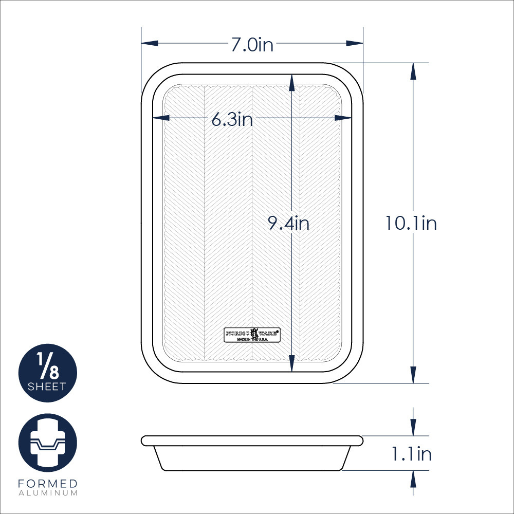 Small in size but big on performance, the Nordic Ware Prism Eighth Sheet Pan brings premium quality to everyday cooking. Part of our Embossed Natural Aluminum Bakeware collection, this pan is crafted from pure, rust-resistant aluminum for superior heat conductivity and evenly baked results every time. The exclusive Prism embossed grid pattern enhances airflow, promotes uniform crisping, and provides a naturally nonstick surface for effortless food release and easy cleanup.
