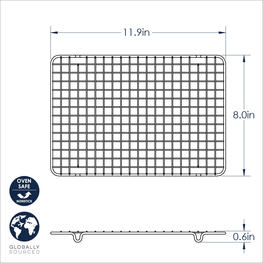 Transform your baking game with this incredible oven-safe nonstick cooling grid. It is designed to fit perfectly with our Quarter Sheet Pan! Whether you're looking to crisp up your creations, roast them to perfection, or decorate them like a pro, this versatile tool has you covered. And when it's time to let your baked goods cool down, this cooling grid will ensure they stay in tip-top shape. Please note this product includes the cooling grid only.