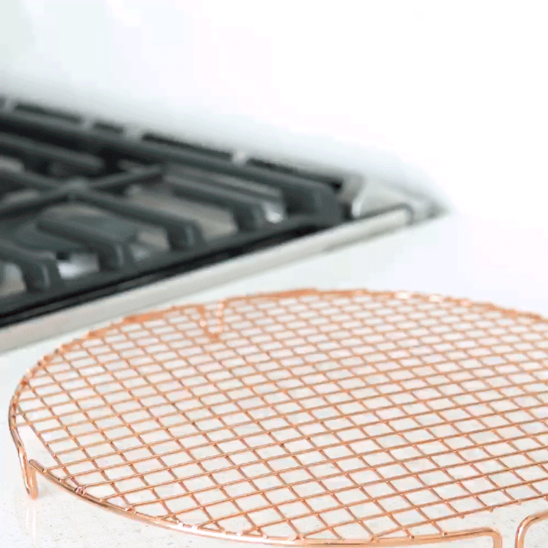 Lightweight yet sturdy, this cooling and serving grid provides stability and easy handling for a variety of treats. While designed for cooling and serving, it is not intended for oven use, and hand washing is recommended to preserve its finish. Whether preparing, displaying, or serving your favorite baked goods, this 13-inch round copper-plated grid combines practicality, elegance, and versatility, making it an essential accessory for every home baker.