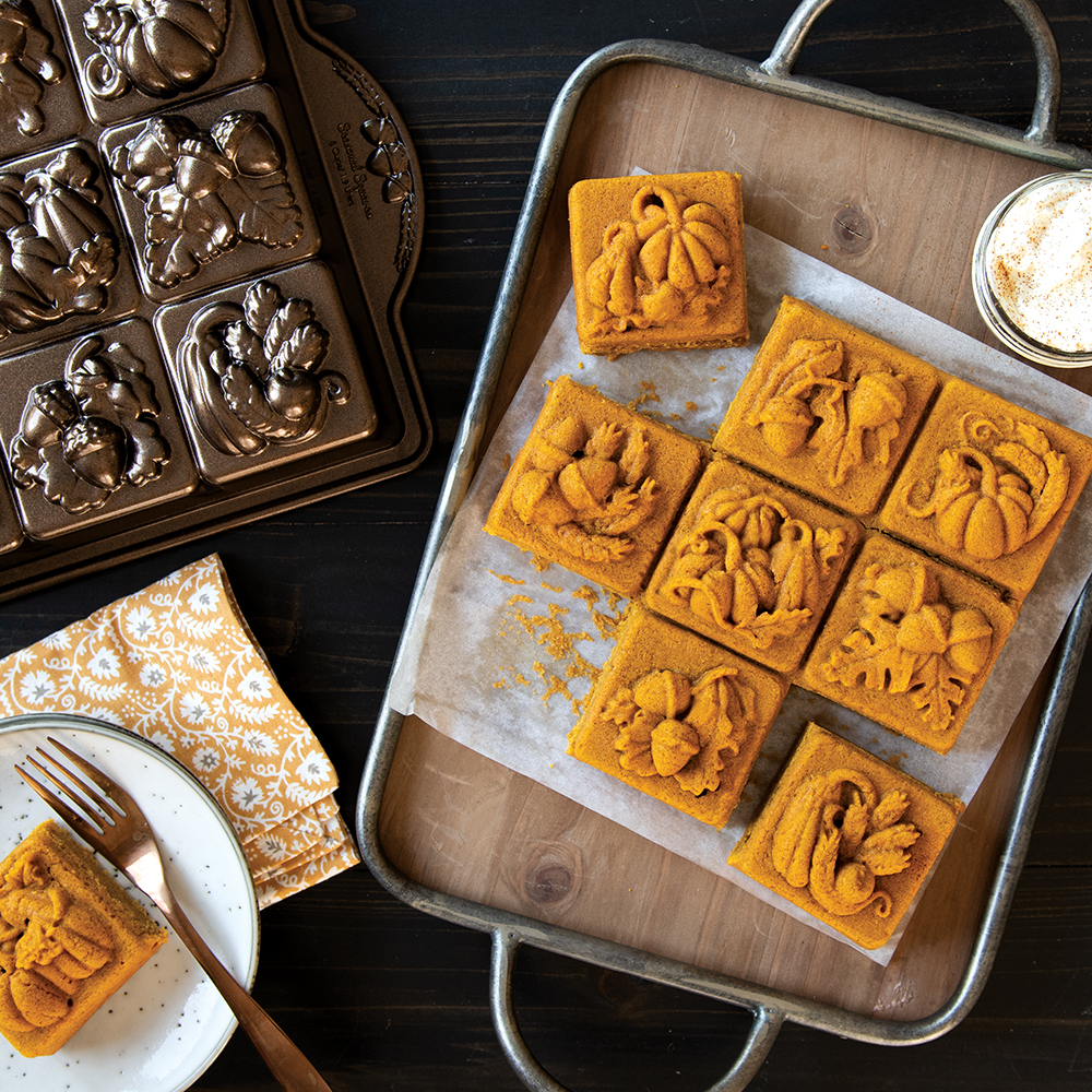 Celebrate the flavors and fun of fall with the Nordic Ware Seasonal Squares Pan. Crafted from durable cast aluminum, this pan features nine intricately detailed cavities shaped like autumn leaves, acorns, and pumpkins, perfect for creating beautifully defined cakes, brownies, fudge, or molded desserts. Each cavity captures fine detail, making it ideal for gifting, holiday entertaining, or seasonal parties. The premium nonstick interior ensures effortless release, while the cast aluminum construction delivers even baking and consistent results every time.