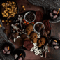 Product image 9 of 10: Halloween-themed charcuterie board with skull-shaped cakes, orange cheese, crackers, and seasonal decorations arranged on dark surface