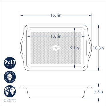 Bake your favorite sweet and savory dishes with the Nordic Ware Treat 9x13in. Baking Pan, designed for versatility and reliable performance in every kitchen. Perfect for cakes, bars, lasagna, roasted vegetables, and more, this rectangular pan delivers even heat distribution thanks to its heavyweight carbon steel bakeware construction. Treat bakeware features a premium nonstick surface for easy release and quick cleanup, making it simple to create perfect baked goods every time.