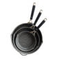 Product image 5 of 5: Three Nordic Ware Verde ceramic nonstick skillets in green finish, nested together with glass lid visible