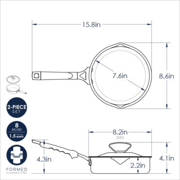 Included with the skillet is a stainless-steel lid with imported cast knob, providing a secure grip and locking in heat and moisture. Perfect for sauteing, frying, and searing, the Nordic Ware Verde 8 Inch Skillet and Lid is a reliable kitchen essential for home cooks and professionals alike, finished in a stylish speckled sage color.