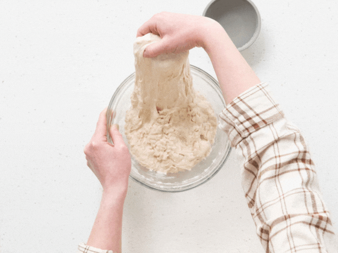 Instead of kneading, many sourdough bakers use a series of gentle stretches and folds during bulk fermentation. This develops gluten without deflating the dough.