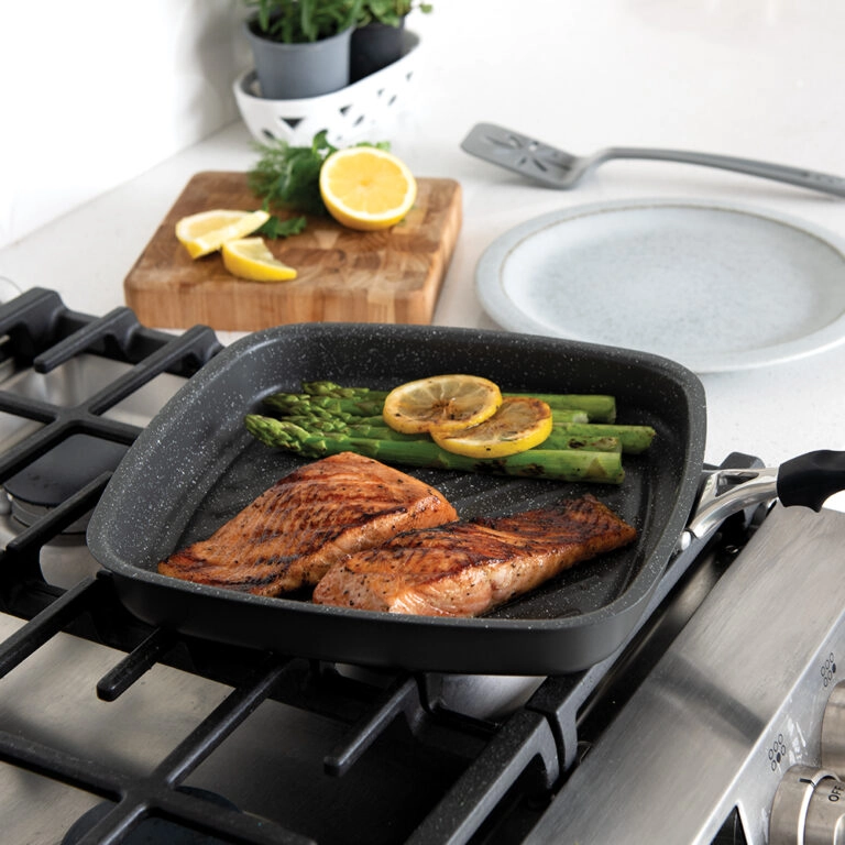 This exceptional ceramic cookware collection is designed for professional-grade cooking for an affordable cost. Three high-sided, straight walled skillets are designed for superior browning, searing, simmering and frying, while a grill pan, braiser, wok and stock pots provide special-purpose cooking capabilities to round out the collection. Unleash your inner chef and try Verde Ceramic Cookware.